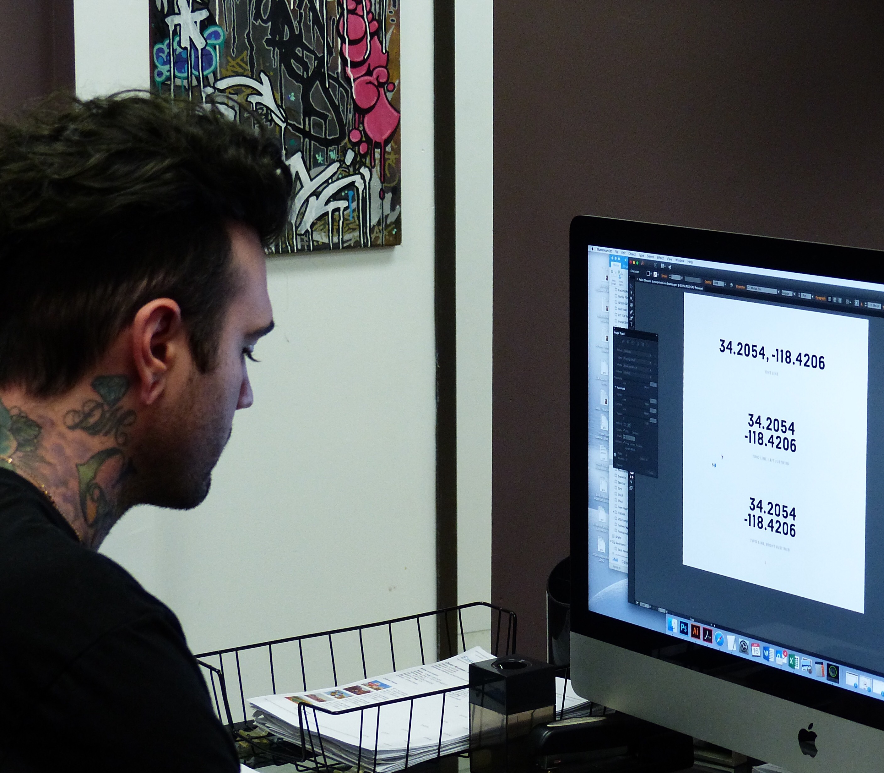 Son Shane is one of the graphic designers. Our project as to approve a design for a t shirt, we would follow it from inception to finished shirt. The front would have the Atlas Obscure logo, the back, the gps coordinates and the unique date of 16.6.16